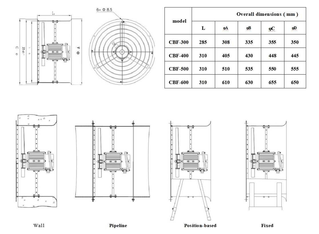 ◆According to user requirements: there are four installation methods to choose from: wall type, pipe type, post type and fixed type.