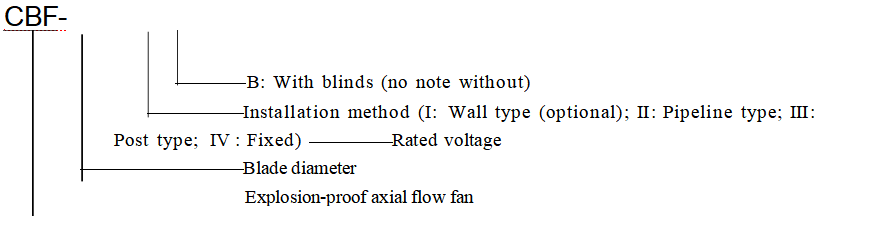 For example, if you need to order a CBF explosion-proof axial flow fan with a fan diameter of 600 mm, a rated voltage of 220 V,