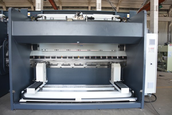 The machine is equipped with a CNC-controlled mechanical crowning working table, which automatically calculates and compensates for deflection during bending. This ensures uniform bending angles across the entire workpiece, even for long or thick materials.